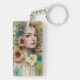 Llavero Retrato de mujer de flor abstracta