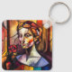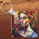 Llavero Retrato de mujer de vidrio templado con Rosa