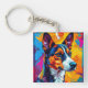 Ilustracion abstracto brillante y animado de un perro basenji con colores llamativos y líneas nítidas. Perfecto para los amantes del arte y aquellos inspirados en retratos mascotas creativos y vibrantes.