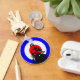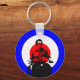 El estilo italiano se une a la cultura británica para producir un icono. Un regalo ideal para cualquier moto o chica. El diseño presenta un motociclista retro mod en su motocicleta encerrado por el blanco icónico y blanco mod blanco y azul
