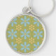 Llavero Retro Resumen de flores azules y amarillas en verd