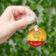 Diseño moderno con papel de textura dorado (imagen impresa) con deseos verticales de chino dorado + gran 2026 en rojo + papel de caballo pequeño con textos amarillos FELIZ AÑO NUEVO y Año del caballo sobre un fondo rojo y dorado. Diseño en la cadena de claves doble cara redondeada básica con el nombre (en la parte posterior). Puede cambiar fácilmente el año haciendo clic en el botón personalizar. Tarjeta de felicitación coincidente, postal de vacaciones, pegatina y más pronto... Perfecto para un año nuevo y moderno chino del caballo 2026.