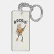 El texto de Rockin con un rock feliz tocando una guitarra es un diseño musical divertido para músicos, estudiantes y profesores en cumpleaños y vacaciones.