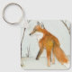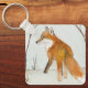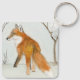 Una pequeña pintura acuarela de un zorro rojo en una cacería en el paisaje de nieve del invierno.
