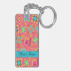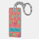 Llavero Rojo con bloques de tejido colorido y personalizad