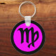 Cadena de teclas de botón circular Virgo, estilo básico de cadena de claves con fondo magenta (color púrpura), borde negro, diseño original de símbolo virgo. También hay disponibles estilos y tamaños de cadenas de claves redondeadas y cuadradas. Haga clic en la ficha "personalizar" para agregar texto, mover o cambiar el tamaño de las imágenes si lo desea. Feliz bendición de Happy Wishing Well punto com.