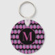 Llavero Ropa monogramada negra y rosa de cuatro hojas