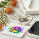 Rosa grande y floreciente con pétalos de arco iris sobre fondo blanco, pintado con salpicaduras de pintura colorida y brillante. 3.ª