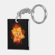 Rosa en llamas del fuego y la llama sobre fondo negro.