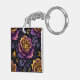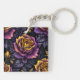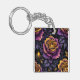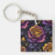 patrón Rosa, floral, morado y amarillo con fondo negro,