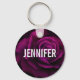 Un keychain personalizado con un aspecto gótico. Un viejo pergamino gris con pinturas de rojo violeta alrededor de los bordes. Un rosa de magenta en flor, un rosebudo, una vela y un cesto de plata en un oscuro fondo burdeos crean un hermoso, oscuro y misterioso diseño gótico.