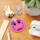 Esta cara de dama rosa tiene ojos azules y labios rojos.