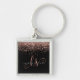 Glam Rosa Gold Purpurina Elegant Monogram Keychain Fácilmente personaliza este diseño de moda de la cadena de teclas de moda con un elegante purpurina rosa brillante de oro sobre un fondo negro. El diseño incluye su monograma manuscrito con giros de bonito y nombre.
