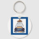 Una señal de lavado de coches con un coche pasando por el lavado de coches. Este diseño parece realmente efectivo en esta cadena de claves