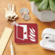 Puerta de protección contra incendios e icono de llama sobre fondo rojo. Texto personalizado en la parte posterior.