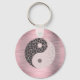 Un patrón de gradiente de gradiente metálico de piel de color rosa brillante que crea un aspecto brillante y un símbolo yin yang rosa y negro claro hecho de un patrón de mosaico circular para vibraciones místicas extra. Elegante tema de moda boho