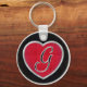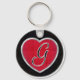 Keychain features a crushed ruby in silver inlaid heart with a monogrammed initial.