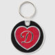 Keychain features a crushed ruby in silver inlaid heart with a monogrammed initial.