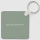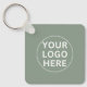 Este llavero presenta un diseño elegante en color verde sabio y gris, destacando el logotipo de su empresa. Es un artículo promocional ideal, que combina la practicidad con la visibilidad efectiva de la marca para su negocio.