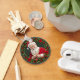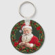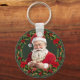 Santa Claus sonríe dentro de una corona decorativa con bayas, bayas, flores rojas y vegetación, capturando la esencia de los Navidades y las celebraciones festivas.