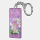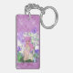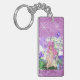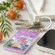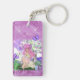 Niña pequeña sentada con flores y mariposas. Imán morado.