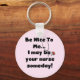Enfermera camisetas de texto, tazas, tarjetas, pegatinas, botones, bolsas y otras prendas de enfermería y regalos con un estetoscopio y texto que dice "¡Sé amable conmigo... ¡Algún día podría ser tu enfermera!".