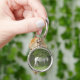 Este tierno keychain muestra una hermosa fotografía de un bello caballo blanco parado bajo un árbol que parece un poco tímido.