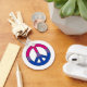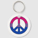 Cadena de teclas de botón básico con diseño de símbolo de paz en colores de la bandera de orgullo de bisexualidad; franjas rosa, púrpura y azul en fondo blanco