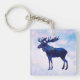 Silueta de alce azul celestial de acuarela digital sobre fondo rosa pálido y nublado azul