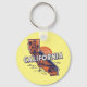 La elegante cadena de claves metalizado presenta una silueta de estado de California de estilo retro con fondo amarillo soleado