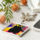 Colorido arte abstracto original arte fino de la silueta de dama con coloridos diseños de acuarela con girasol en su cabello.