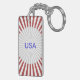 Este diseño presenta una silueta de un patinador de hielo haciendo una pose. El patinador tiene forma ovalada de rojo, azul y blanco y el fondo es rojo y blanco. Al revés hay un círculo de rojo y blanco con EE.UU. impreso en el centro en azul. Estas cadenas están disponibles en diferentes formas y hacen un gran regalo para el individuo que ama el deporte del patinaje sobre hielo.