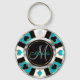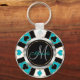 Llavero Silver and Turquoise Poker Chip Design - Monogram
