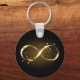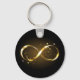 Oro, símbolo de infinito de joyas con estrellas doradas sobre fondo negro. Diseño con estrella dorada.