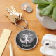 Yoga Studio Meditation Instructor / Life Coach / Healer / Reiki Master / Massage Therapy Keychain Template - Modern Black & Silver Yoga Meditation Pose / Tree Pose (Vrksansana) y OM Symbol on Black Leather Texture Background.