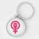 Este símbolo presenta un puño rosado elevado en el símbolo de género femenino.