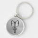 Este símbolo pesadamente stylized para el aries de la muestra del zodiaco tiene el aspecto del lanzamiento fuera del hierro sólido. Una sombra cae sobre el fondo del acero inoxidable que hace que el símbolo aparece flotar apenas sobre la superficie de este llavero.