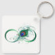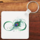 El símbolo del infinito con una pluma de pavo real brillante, verde y artística sobre un fondo blanco. Estilo tatuaje.