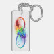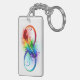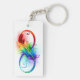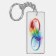 Símbolo de infinito dibujado artísticamente con una hermosa pluma arco iris sobre fondo blanco. Estilo tatuaje.