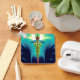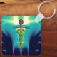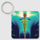 Llavero SÍMBOLO MÉDICO CADUCEO DE ORO Aqua Turquesa Azul