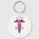 Cadena de claves personalizada con un elegante símbolo caduceus con las letras R N a cada lado. Diseño minimalista sencillo.