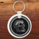 SKULL - Calavera ilustrada en blanco y negro ovalada sobre un fondo espiral.