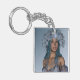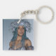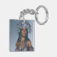Representación digital 3D de una linda criada de nieve en fondo brillante azul