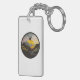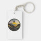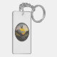 A sticker with an eagle flying over a mountain, in the style of contemporary landscape, golden light, black mountain college, fisheye lens, arts and crafts movement, mid-century illustration