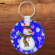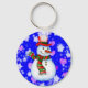 Encantador muñeco de nieve, estrellas y corazones de fondo azul. Encantador keychain, tan agradable como regalo de Navidad!