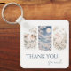 A gentle watercolor thank you key ring featuring soft woodland animals and delicate floral details in a calm pastel palette.