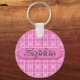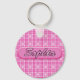 Cadena de llaves en pequeños patrones de corazones rosados con el nombre de Sophia impreso en ella.
