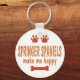 If Springer Spaniels bring you happiness, you'll enjoy this cute design with the paw prints and bone and the words Springer Spaniels Make Me Happy.