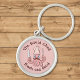 Personalizado del chef del calamar rosa con bigote sosteniendo cuchillo y tenedor de cocina. Color de fondo personalizado. Dos campos de texto personalizado en círculo.
