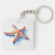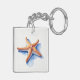 Un ilustracion de una estrella de mar naranja con su silueta azul debajo. Dibujo de acuarela. Puede ser un buen ilustracion en tu llavero, sobre todo si te gusta el ilustracion.